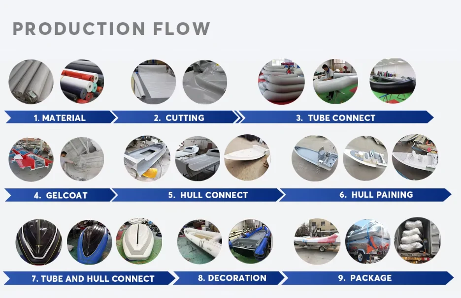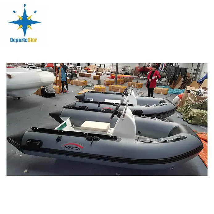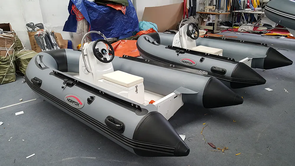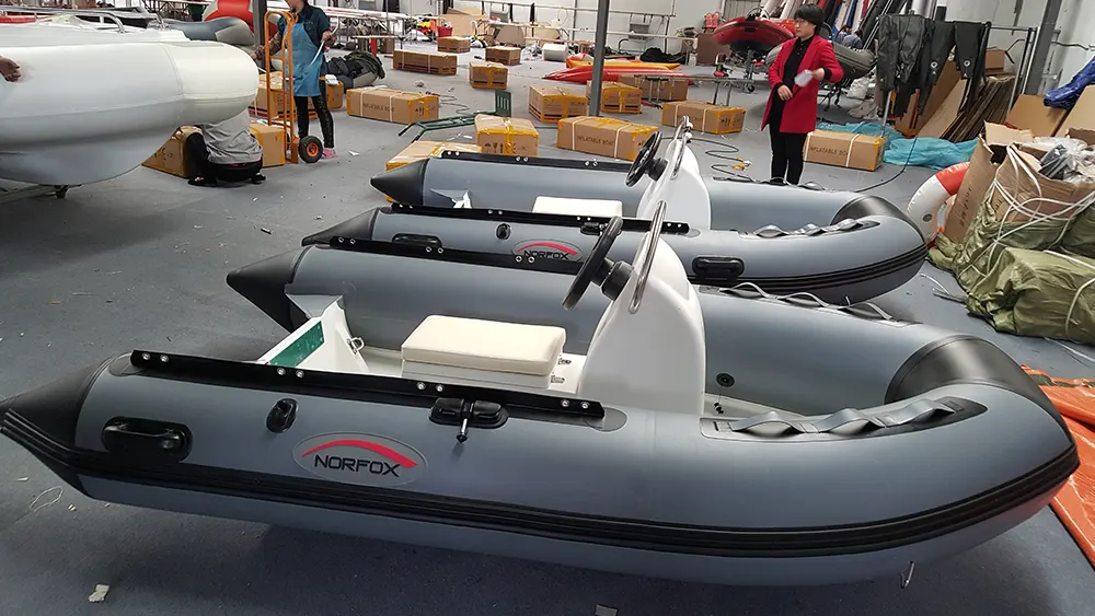 1. Al onze semi-stijve opblaasbare boten van glasvezel voor jetski's zijn gemaakt van hoogwaardige glasvezelrompen en hypalonbuizen van maritieme kwaliteit.
